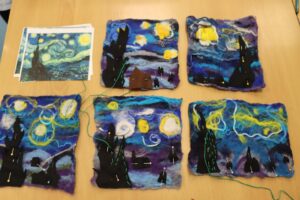 Pupils enjoy creating felt collages, weaving, fabric painting and threading beads.